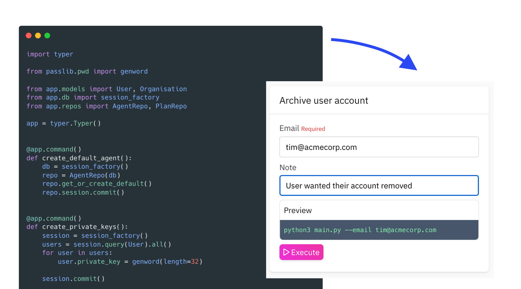 Quickly create custom UI for your business ops teams to enable them to run scripts without requiring technical knowledge.