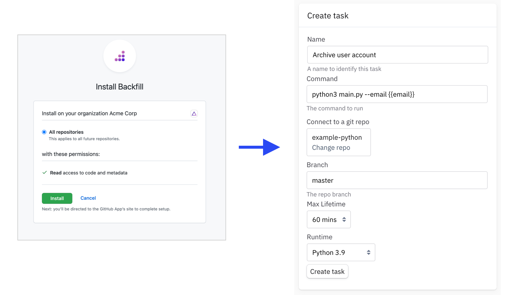 Simply connect Backfill to your existing Git repos that contain your engineering scripts